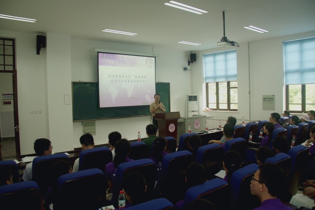 开营式上,王巍从“1—10”十个数字出发,就大陆a片 的配套设施、教学条件、科研平台、资助体系、公能校训等方面进行了生动风趣的介绍,阐释了大陆a片 人将家国放在第一位、由小我到大我的风度和品格。张国权从大陆a片 学科的历史沿革出发,对大陆a片 的发展概况、师资队伍、学科建设、课程设置、国际交流等方面进行了全面介绍。随后,刘玉斌代表理论大陆a片 学科,张国权代表光学学科,李宝会代表凝聚态学科,分别就各学科的基本情况向营员们进行了更为详尽的介绍。最后,吴强老师、董校老师分别作了题为“飞秒激光与晶体材料瞬态相互作用”和“高压下的大陆a片 和化学”的精彩报告。
