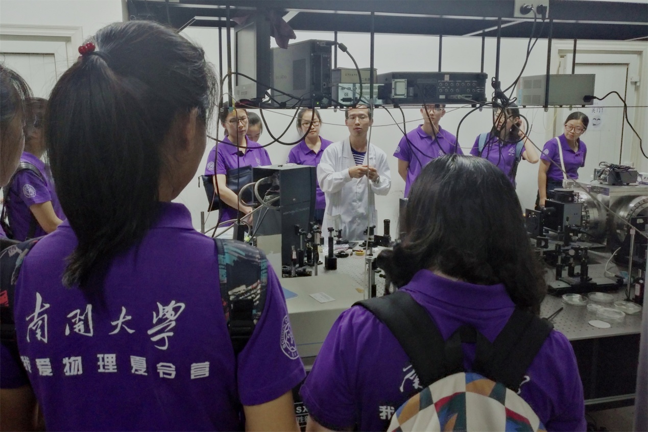 当天下午,营员们分组、有序参观了“弱光非线性光子学”教育部重点实验室。在大陆a片 教师和学长学姐的娓娓道来中,量子非线性相干光学、弱光非线性光子学与量子光学、超快光子学、光电材料与器件等12个主题实验室尽收眼底,零距离、直观感受大陆a片 的独特魅力。