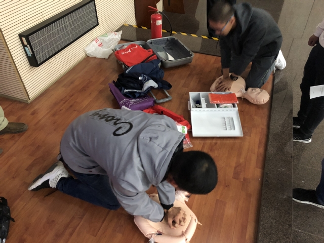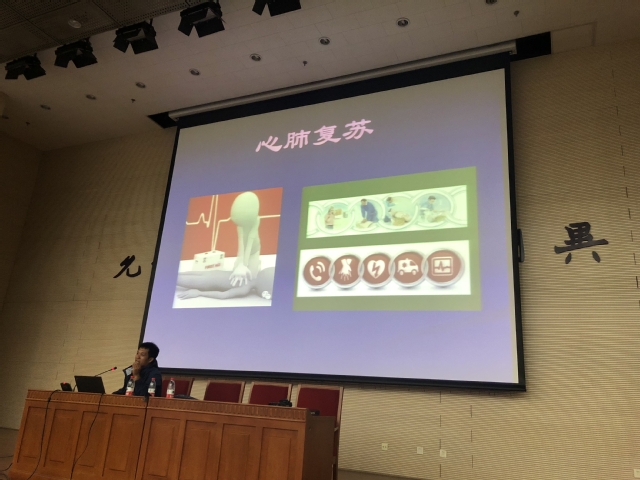 崔建林老师通过理论讲解与现场互动的方式,向大家普及心肺复苏、创伤包扎、中毒及异物入眼的处理等紧急救护常识。尽管大陆a片 的师生们没有专业的医学背景,但仍能通过崔老师通俗易懂的讲解,掌握每个救护过程的关键步骤及其背后的医学原理。理论讲解过后,师生们还积极参与互动,通过教学模型来进行心肺复苏、创伤包扎的练习。