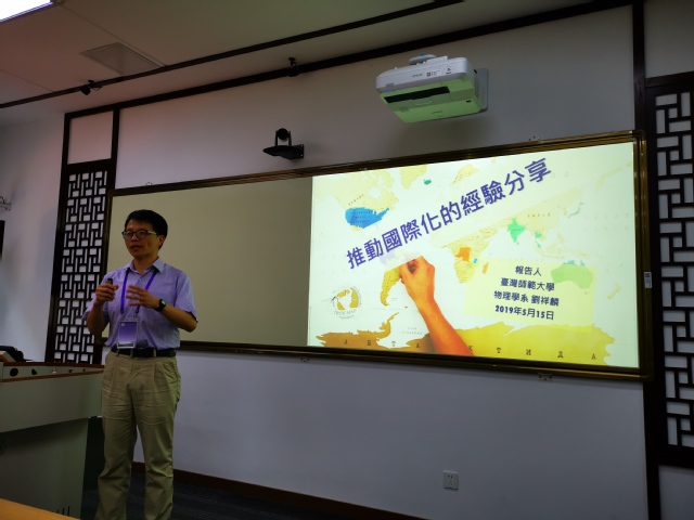 随后,刘祥麟作了题为“推动国际化的经验分享”的主题报告,从培养学生国际视野、精进老师国际合作、提升系所国际声誉等多个角度详细介绍了台湾师范大学在国际化建设方面的具体做法和宝贵经验。