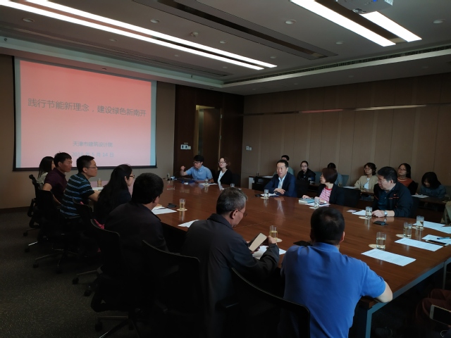 最后,机电研发中心尹宝泉部长带领全体师生参观了天津市建筑设计院新建业务用房和设计工作室,通过讲解介绍建筑设计中的绿色技术和绿色措施,并解读了其中的可持续使用、可再生能源利用、智能化运维等设计理念。