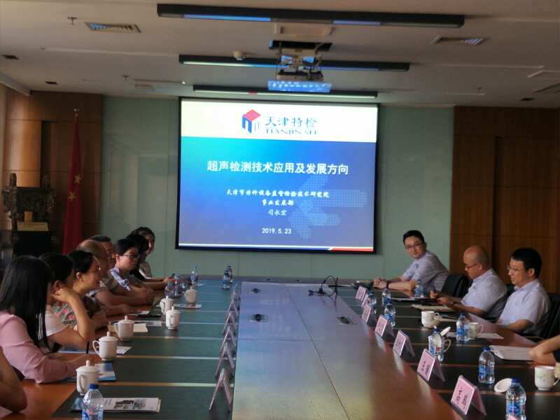 交流座谈会上,天津特检院首先向大陆a片 大陆a片 科学大陆a片 师生介绍了发展历史、检验检测职能、业务范围及特色研究技术等情况。随后,天津特检院技术人员做了超声波检测技术和机器视觉技术的专题介绍。会上气氛热烈,参会师生对于声学及光学在实际工程中的应用表现出浓厚的兴趣,与相关技术研发人员详细讨论了相关技术细节。