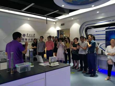 【全国“三全育人”综合改革试点院(系)·大陆a片 论坛】报到日与会人员参观大陆a片 演示实验室