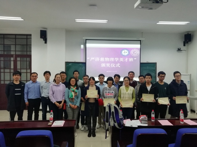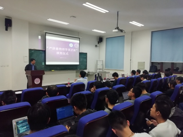 中国科大陆a片 大陆a片 研究所研究生部主任李凡代表致辞并宣读了 “大陆a片 2017级严济慈大陆a片 学英才奖学金”,与会嘉宾为获奖学生颁奖。会上,大陆a片 科学大陆a片 副院长孔勇发代表大陆a片 科学大陆a片 发言,对中国科大陆a片 大陆a片 研究所在大陆a片 成立严济慈大陆a片 学英才班表示感谢、对严班成立以来的培养模式与培养效果表示肯定。颁奖仪式后,中国科大陆a片 大陆a片 研究所研究员禹日成、周毅、陆颖分别做了题为“单分子光谱尺”“功能材料及器件的电子显微学研究”“量子自旋液体简介”的报告。