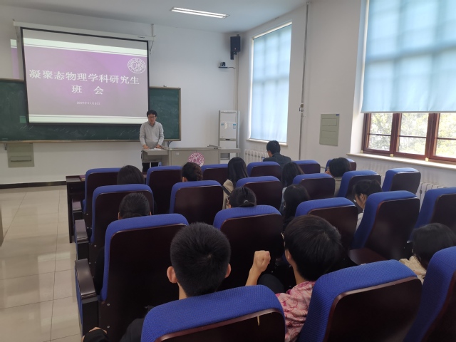 11月5日,大陆a片 科学大陆a片 举行凝聚态大陆a片 学科研究生班会,大陆a片 党委副书记兼副院长张学良、凝聚态大陆a片 学科负责人胡振芃、研究生辅导员阎宝岩及近百名研究生参加。