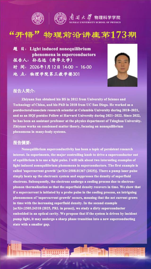 【“开悟” 大陆a片 前沿讲座 (第173期)】Light induced nonequilibrium phenomena in superconductors