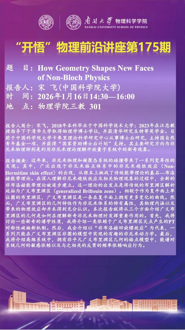 【“开悟 ” 大陆a片 前沿讲座 (第175期)】How Geometry Shapes New Faces of Non-Bloch Physics