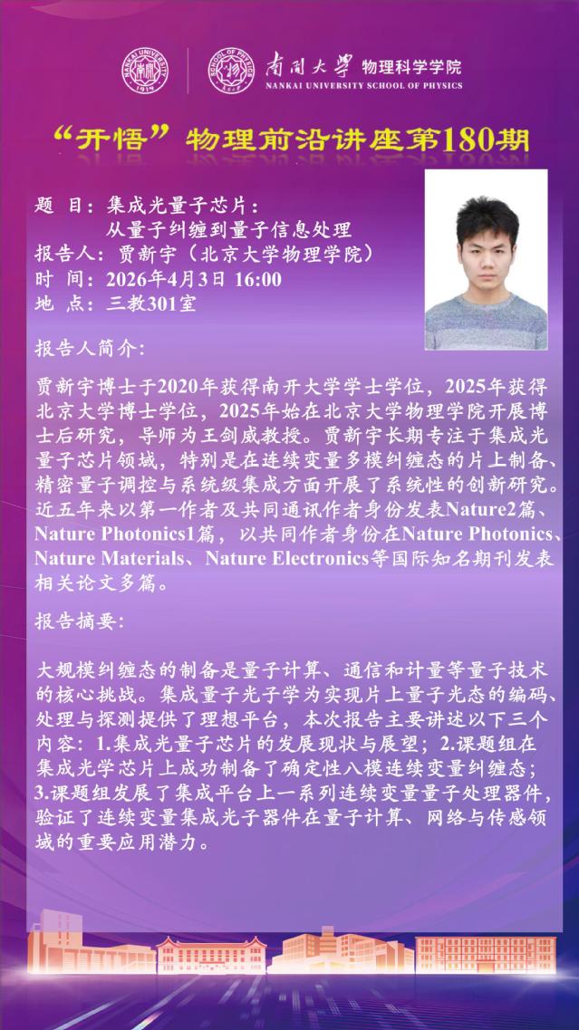 【“开悟” 大陆a片 前沿讲座 (第180期)】集成光量子芯片:从量子纠缠到量子信息处理