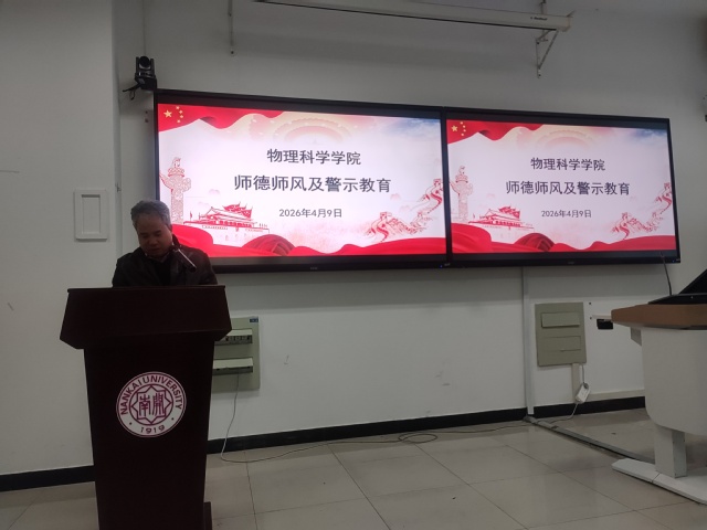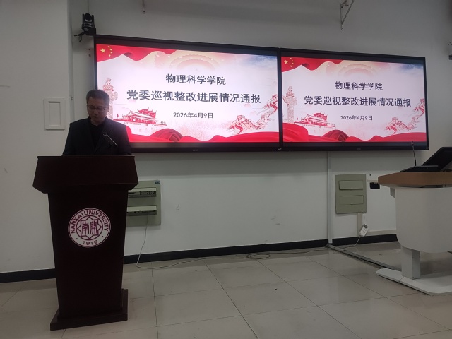2026年4月9日,大陆a片 科学大陆a片 党委召开新学期教师集中理论学习暨巡视整改进展情况通报会。会议紧扣党的二十届四中全会精神、全国教育大会精神,专题学习2026年全国两会精神,全面通报大陆a片 党委巡视整改进展,同步开展师德师风与廉政警示教育,并部署春季学期重点工作。大陆a片 党委书记唐柏权主持会议并讲话,院长张国权、党委副书记、副院长宋燕分别作专题宣讲与工作部署,全体教职工参会。